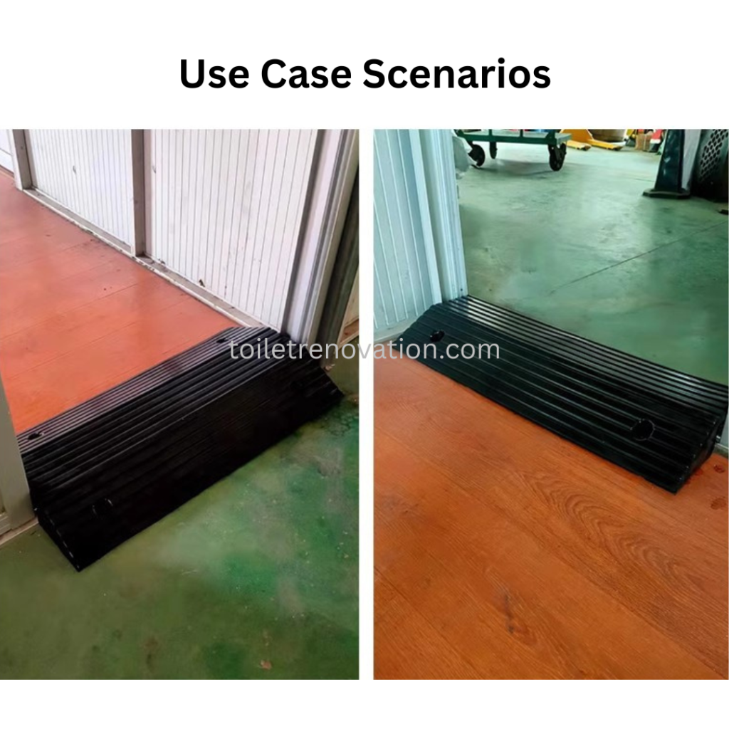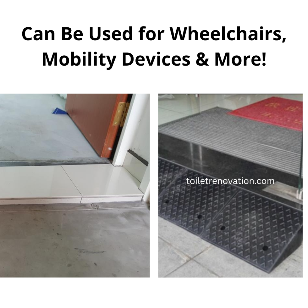 We also have other types of ramps that form a bridge over the existing toilet kerb and can be removed when not in use. This is most commonly used for bathrooms with toilet door tracks on the kerb.